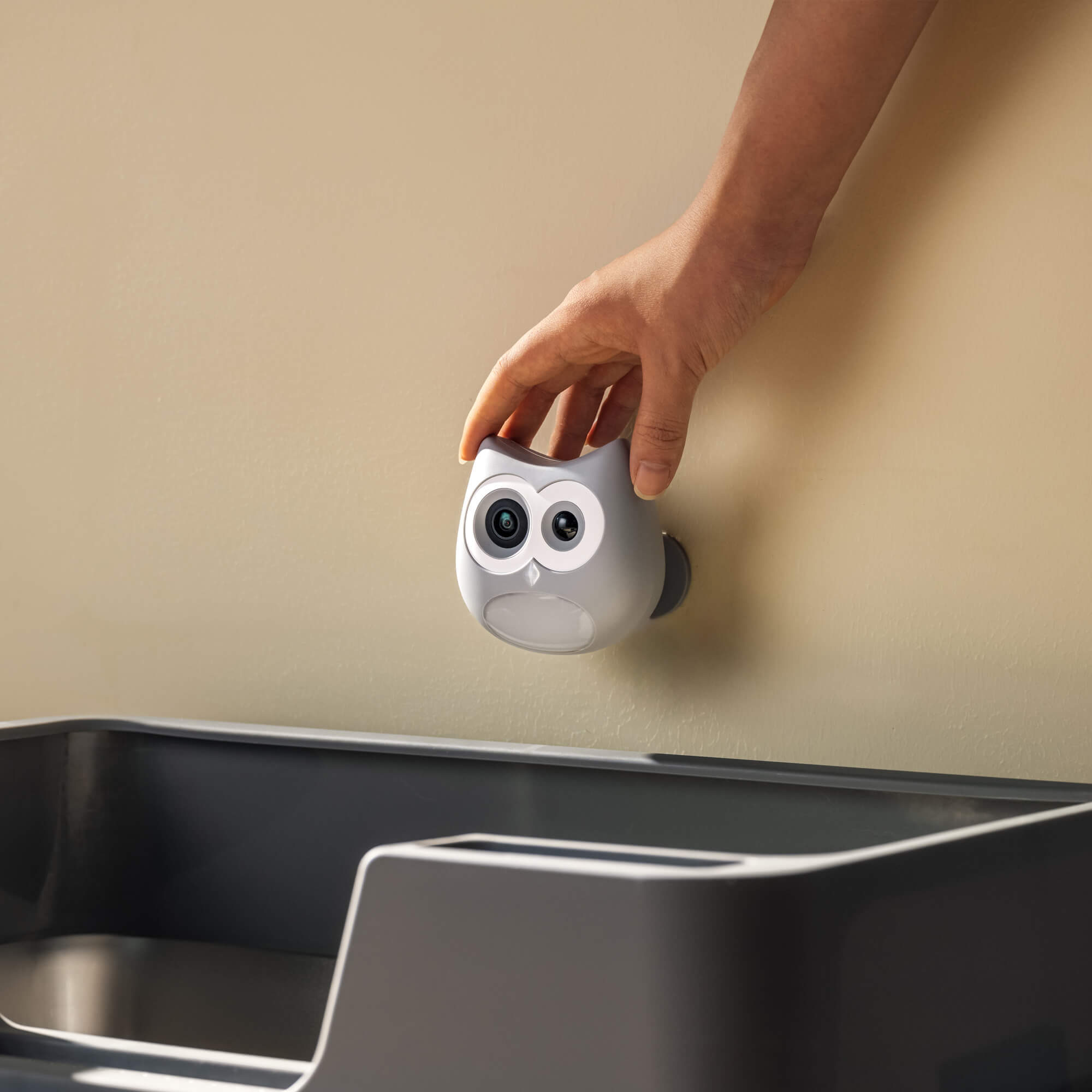 1. Install the Camera: Mount LitterLens above your cat’s litter box using easy-to-install adhesive pads or brackets.