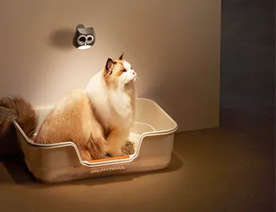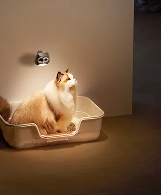 In low light, the device uses a soft nightlight designed not to disturb cats.