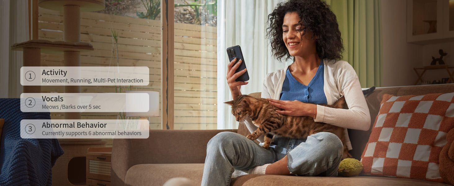 - Get notified of today's highlights featuring your pet's special moments. The camera will also instantly alert you to any abnormal behaviors it detects. Stay updated!